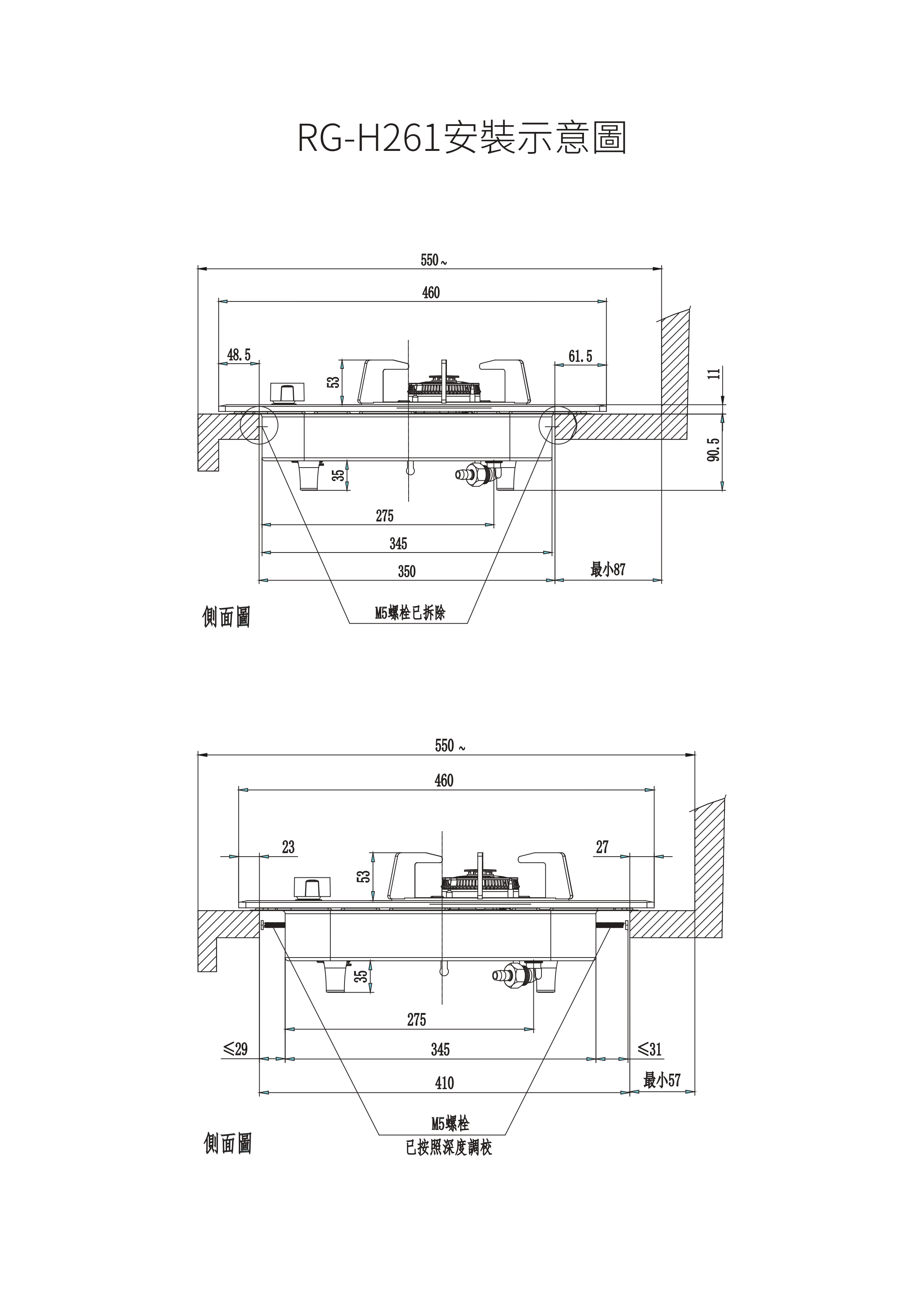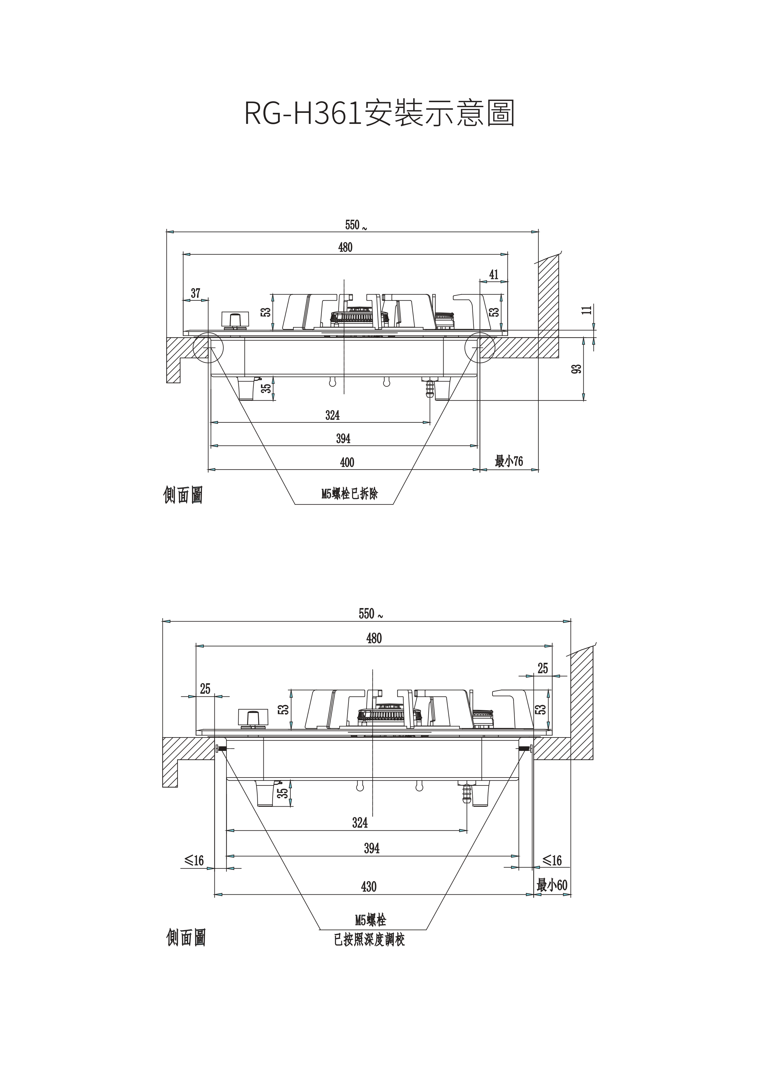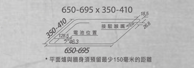 請根據上圖拍攝現有氣體煮食爐的安裝位置