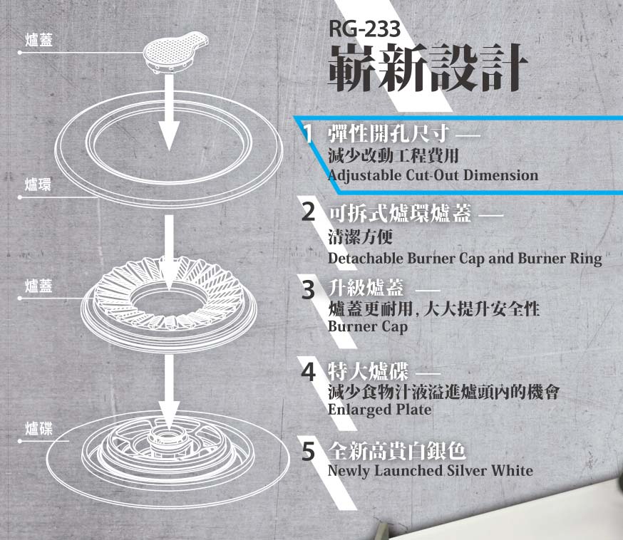 樂信牌氣體煮食爐有2個系列, 1. 馬來西亞產火旋風煮食爐系列 & 2. 專利設計六瓣蓮芯火密閉式系列。